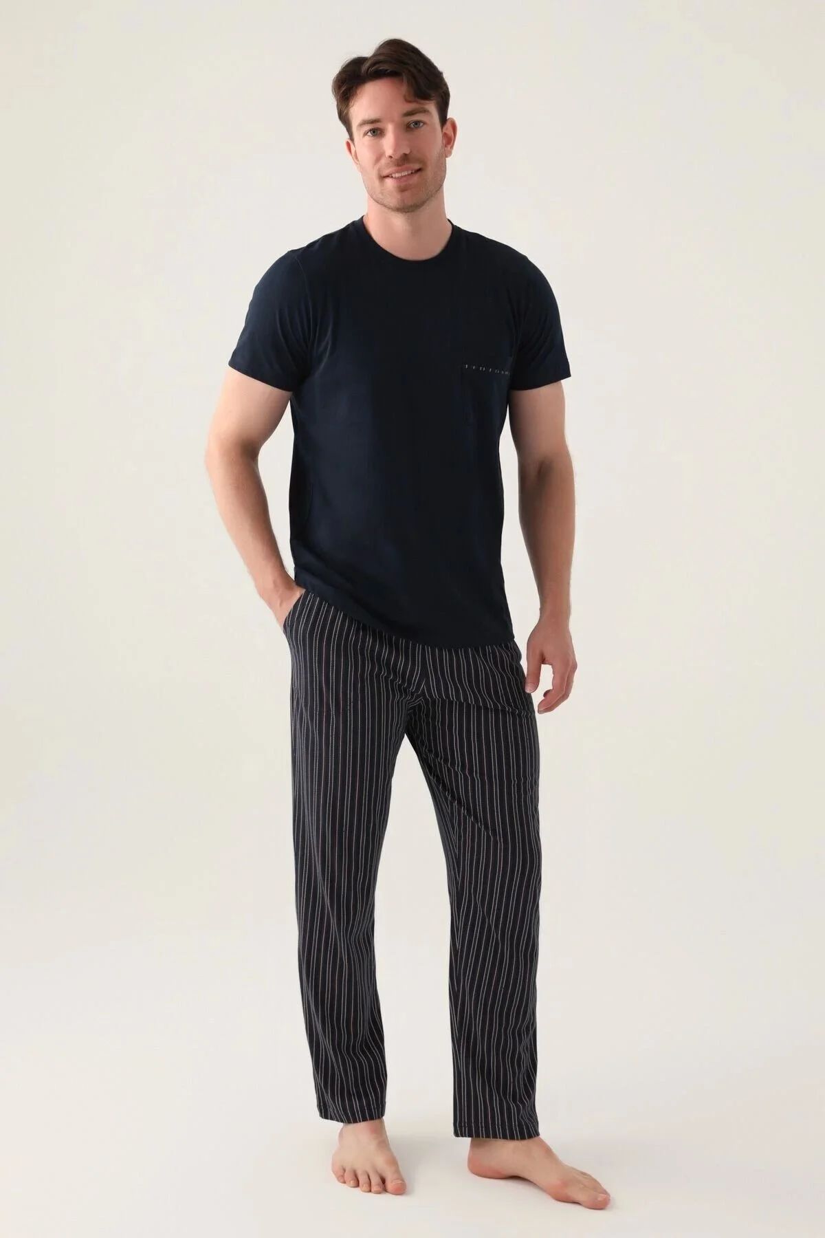 Arnetta 3011 Erkek Sıyah Yarım Kollu Cepli Bisiklet Yaka Pijama Takımı (ARN3011-SIYAH)