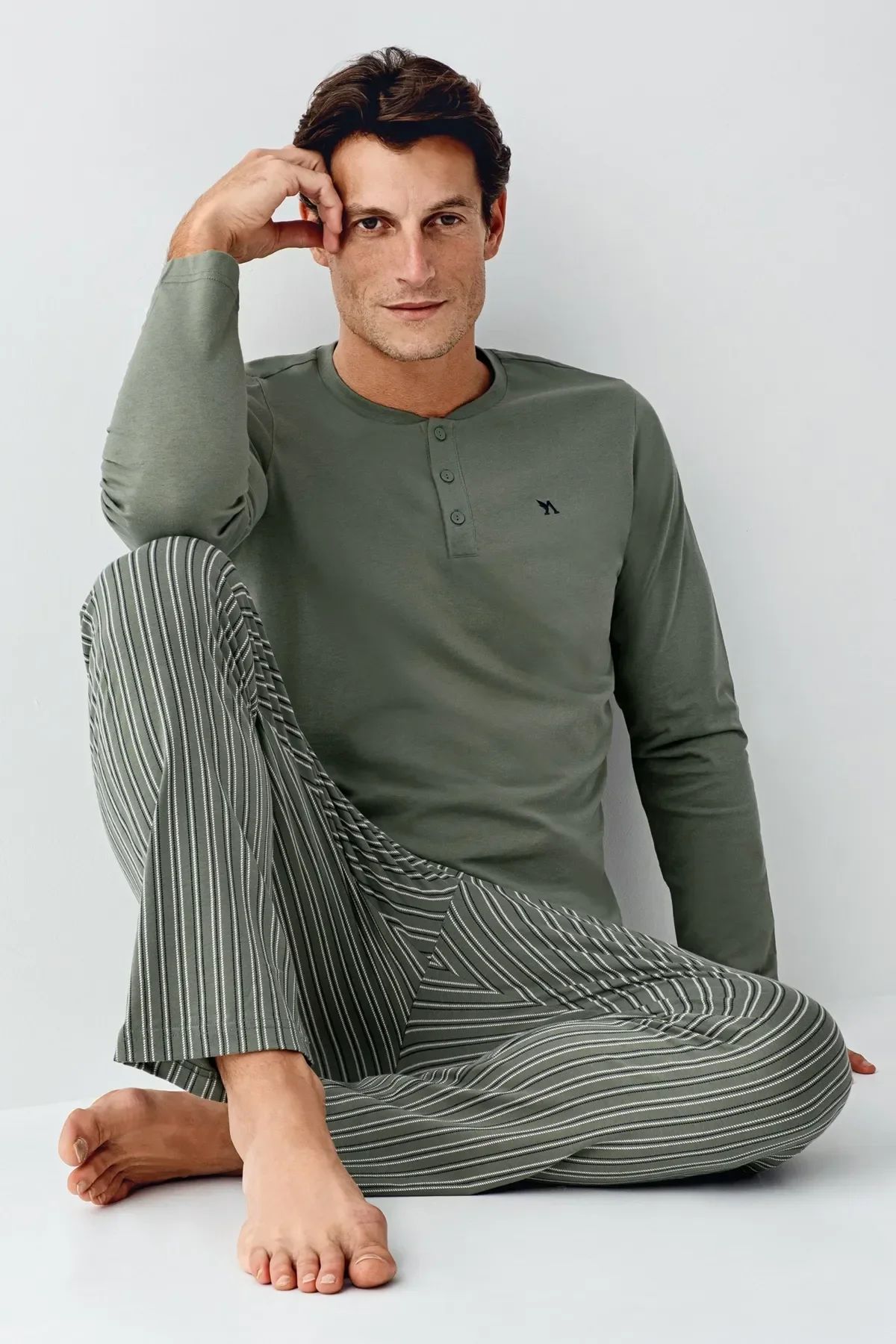 Arnetta 3013B Erkek Yesıl Uzun Kollu Yarım Pat Bisiklet Yaka Battal Pijama TakımıPijama TakımıArnetta
