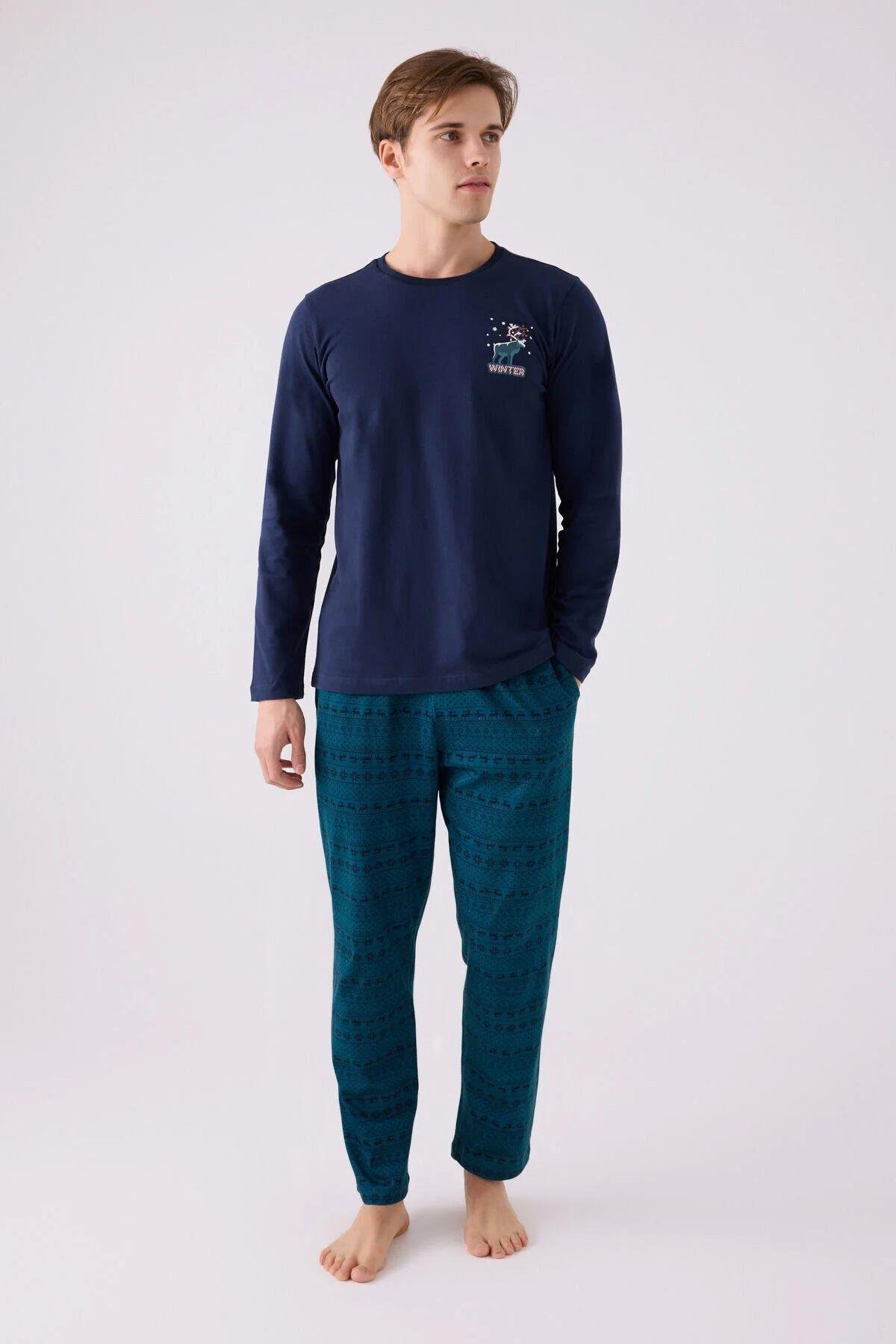 Arnetta 3135 Erkek Lacıvert Uzun Kollu Kış Temalı Pijama Takımı (ARN3135-LACIVERT)
