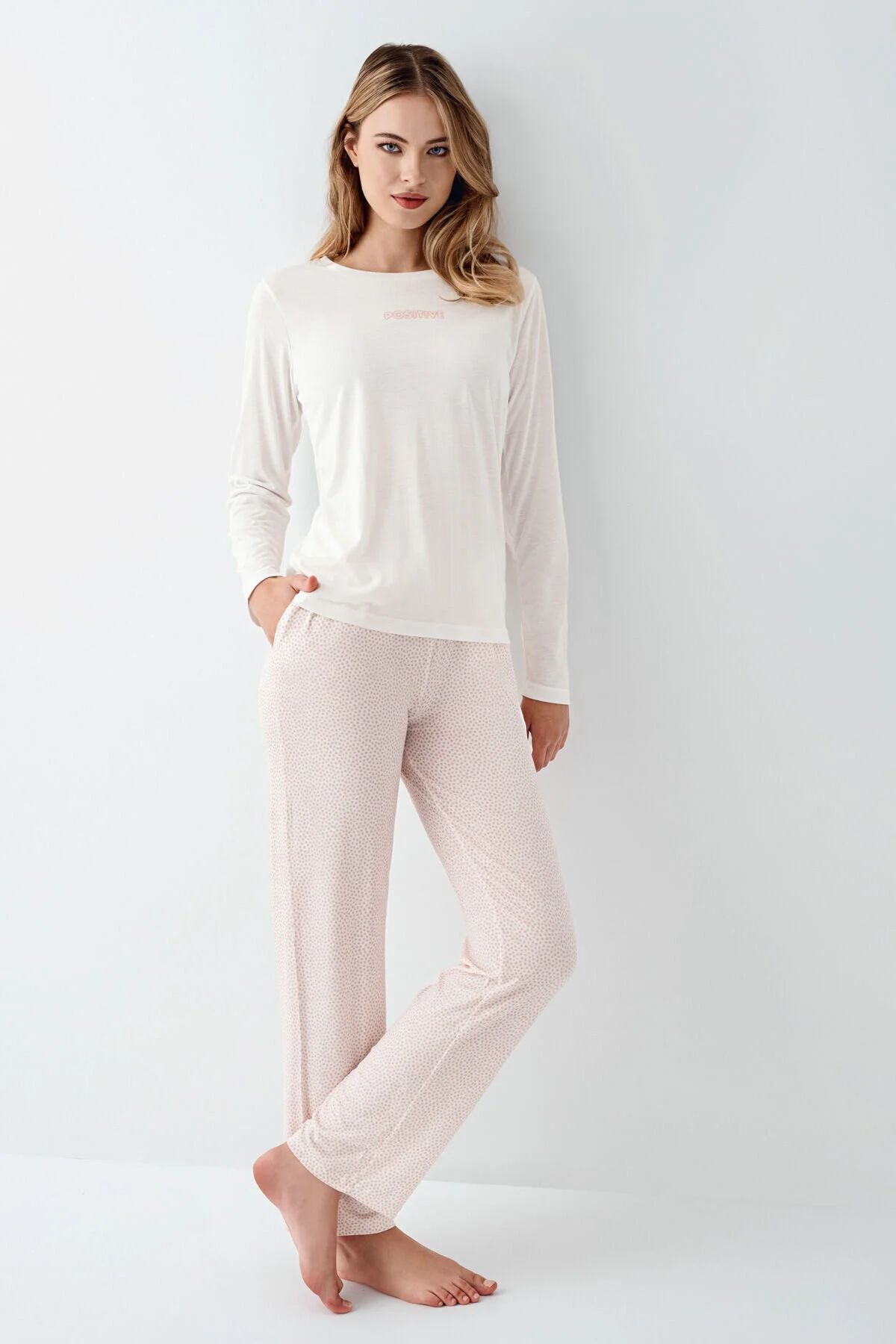 Arnetta 3417B Kadın Beyaz Uzun Kollu Bisiklet Yaka Battal Pijama TakımıKadın Pijama TakımıArnetta