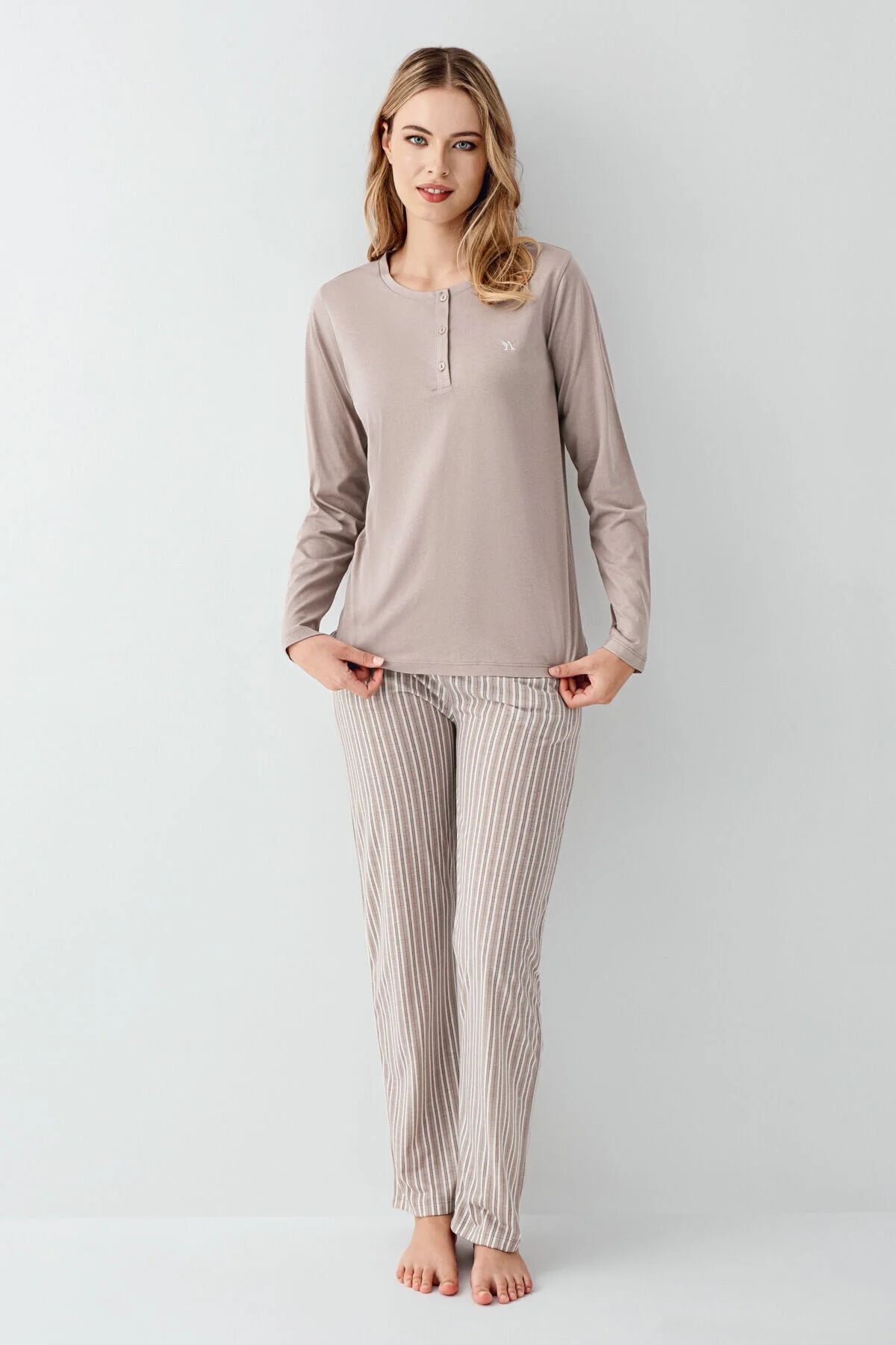 Arnetta 3425 Kadın Vızon Uzun Kollu Yarım Pat Bisiklet Yaka Pijama Takımı (ARN3425-VIZON)