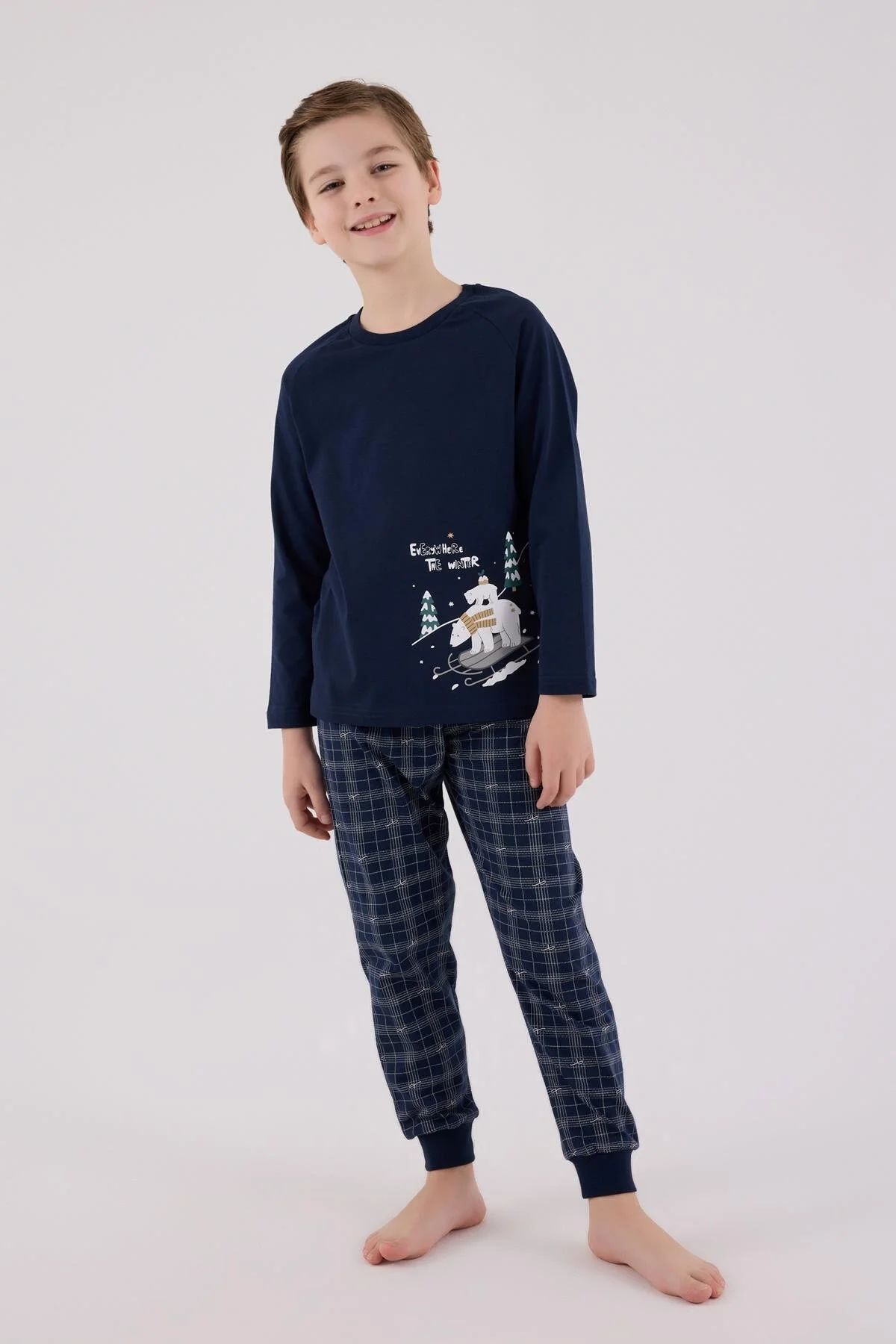 Arnetta 3444G Erkek Çocuk Lacıvert Uzun Kollu Kış Temalı Garson Pijama Takımı (ARN3444G-LACIVERT)