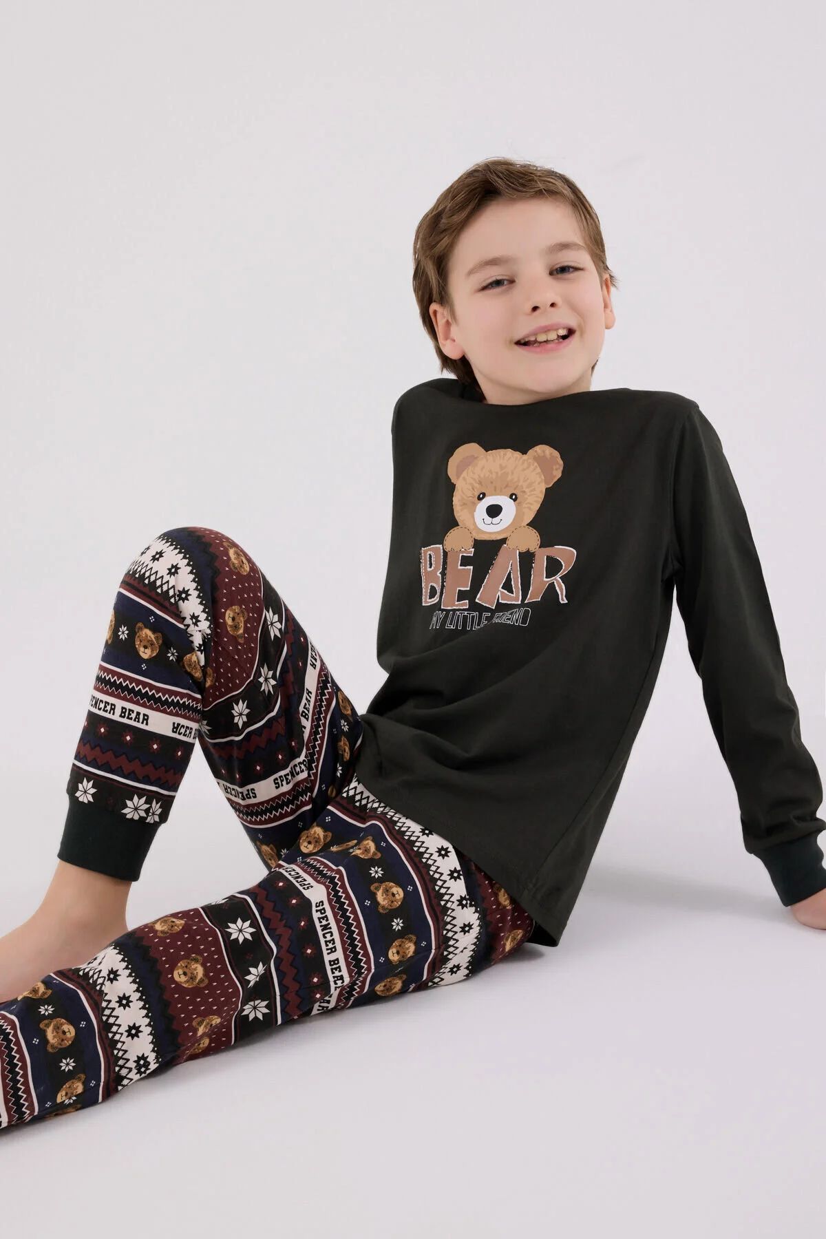 Arnetta 3462C Erkek Çocuk Fume Uzun Kollu Bear Desenli Pijama Takımı (ARN3462C-FUME)