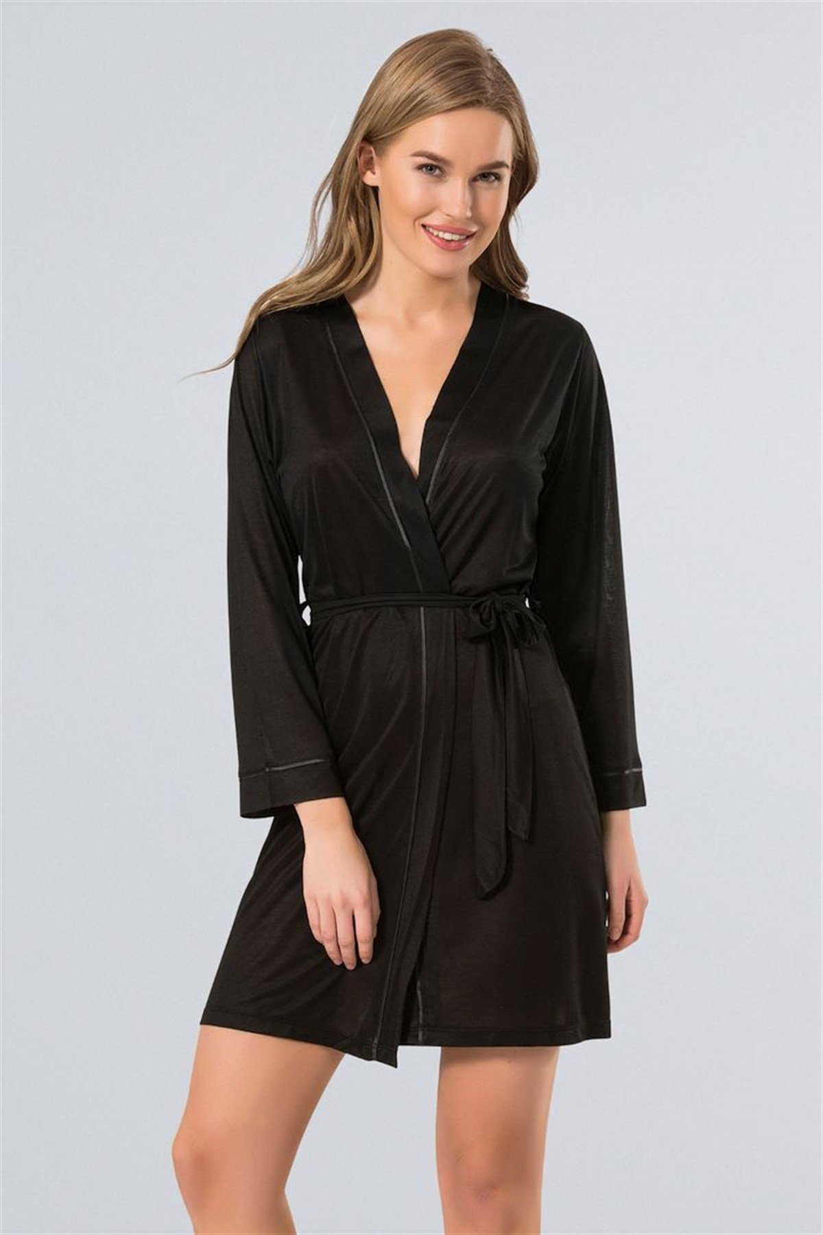 Türen Kadın Siyah Düz Sabahlık 3164 (TRN3164-Siyah)