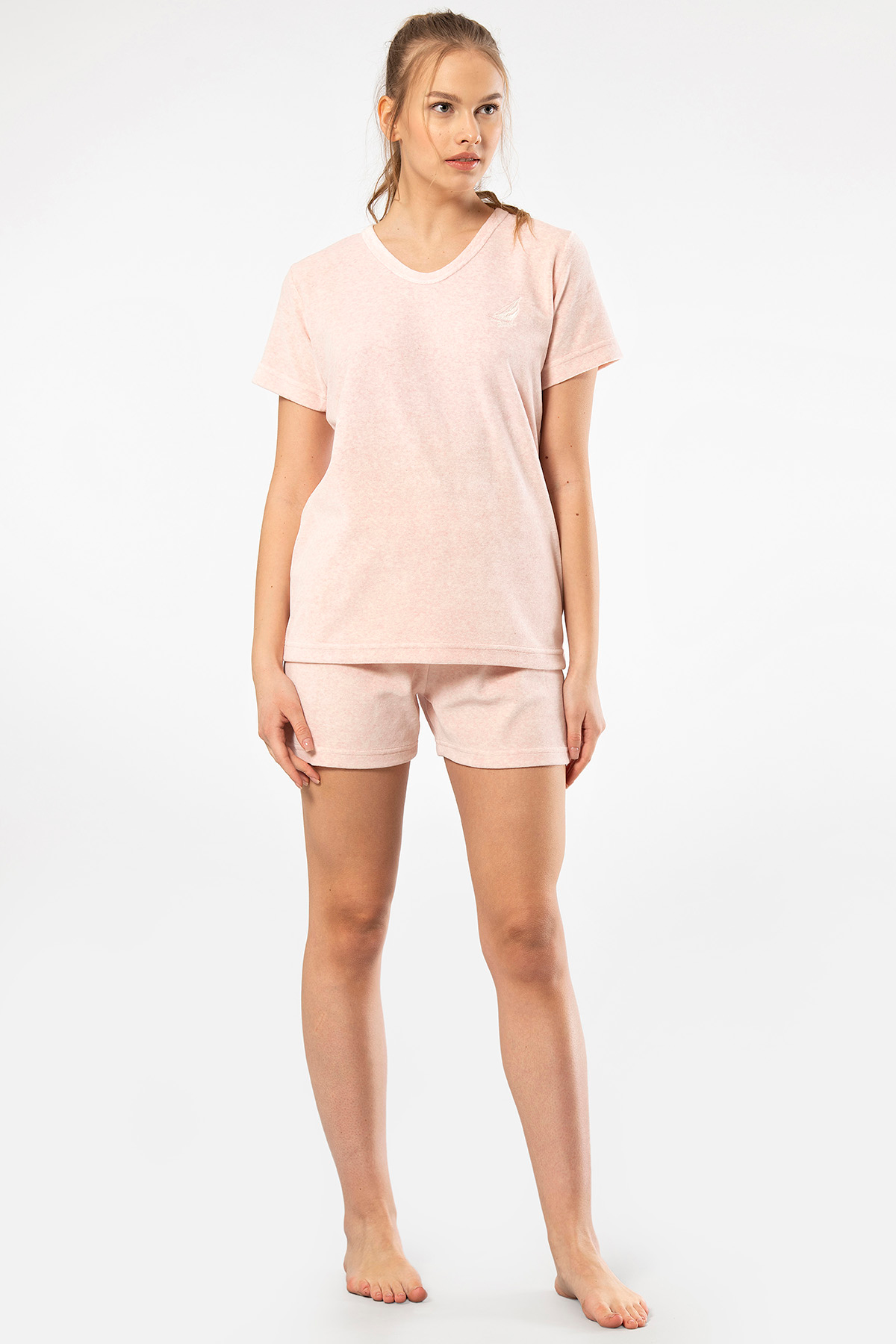 Türen 618 Pembe Kadın Yarım Kol V Yaka Şort TakımKadın Şortlu TakımTüren