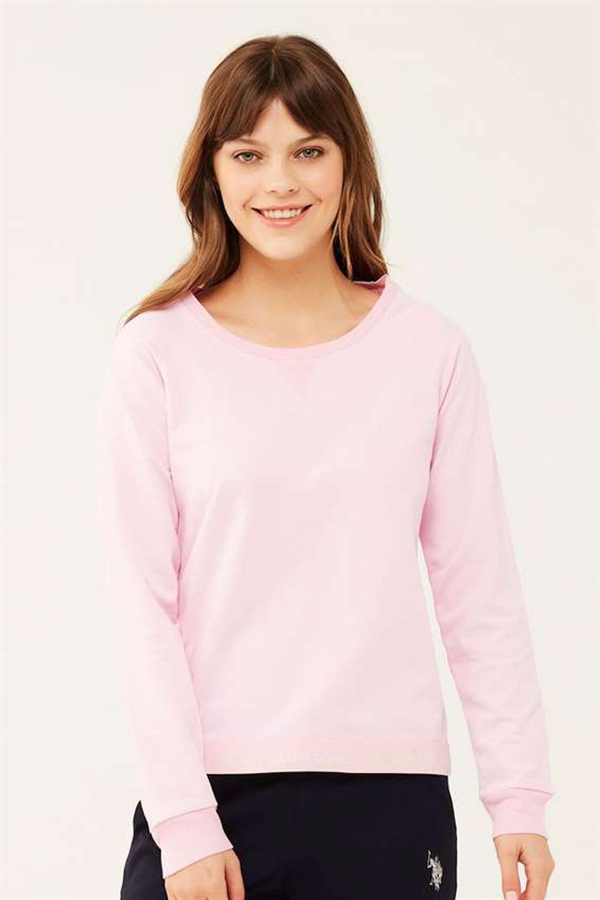 U.S. Polo Assn. 16598 Kadın Pembe Ev Giyim Yuvarlak Yaka Tek Sweatshirt (USP16598-PMB)